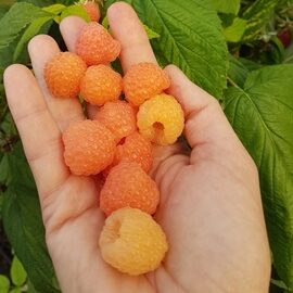 5,00 € – 9,50 €Golden Everest, junto con Alpengold una de las variedades de frambuesa remontante de fruta amarilla, de fruta grande.