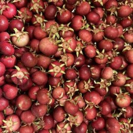 Fruta pequeña, dulce con toques ácidos, abundante, la da para el mes de Julio. No nos tenemos que despistar en darle un abonado continuo a esta planta que seguramente estará en una maceta, siempre con ganas de más.